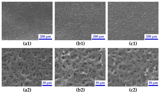 Scanning electron microscopy images of catalyst layers of MEA-0 (a), MEA-672 (b) and MEA-EX (c) at low (1) and high (2) magnification.