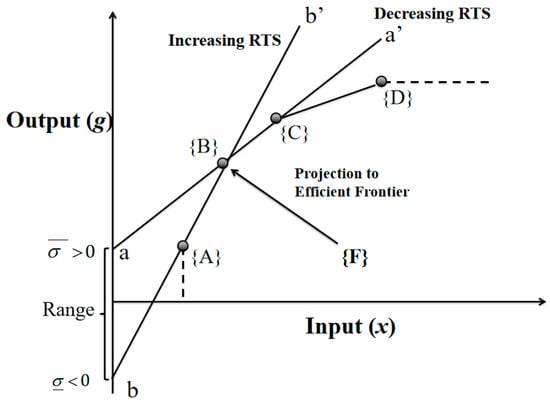 - Sueyoshi, T. DEA duality on Returns to Scale (RTS) in production and cost analyses. Manag. Sci. 1999, 45, 1593–1608. [Google Scholar] [CrossRef]