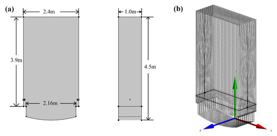 In this study, a side-blown melting furnace of a company in Huize County, China, was used as a simulation object. The construction of a complete side-blown melting furnace with multiple pairs of lances requires a huge number of meshes, which can be extremely burdensome for subsequent calculations. To ensure high calculation accuracy and appropriately reduce the number of grids, only a pair of lances is included in the calculation domain, and the sections on both sides of the lance are defined as periodic boundaries to consider the influence of other lances. The size and meshing diagram are shown in Figure 1a. The grid type selected for the calculation domain is hexahedral unstructured grid. To facilitate the description later, the coordinate system shown in Figure 1b is adopted. Considering that the two-phase flow area mainly occurs in the outlet area of the lance and the melt area above, the number of grids in these two parts is increased. Calculation parameters of the oxygen-rich side-blowing furnace are shown in Table 1.