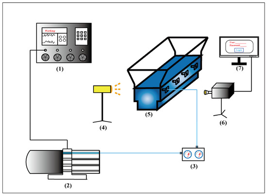 Schematic diagram of water model experimental platform: 1—console; 2—air pumps; 3—flow detector; 4—fill light; 5—water model experimental furnace; 6—high-speed camera; 7—image processing server.
