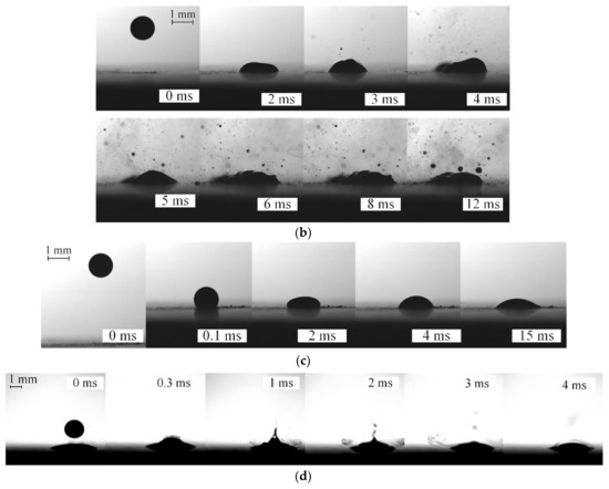- Tang, C.; Qin, M.; Weng, X.; Zhang, X.; Zhang, P.; Li, J.; Huang, Z. Dynamics of Droplet Impact on Solid Surface with Different Roughness. Int. J. Multiph. Flow 2017, 96, 56–69. [Google Scholar] [CrossRef]