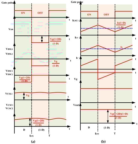 The waveforms related to the voltage and the current of active and passive components of the PSLSC converter in CCM mode are given in Figure 5. On simplifying (1), (2), (6) and (7) the following voltage equations are obtained.