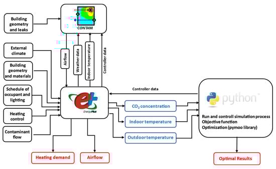 - Dols, W.S.; Emmerich, S.J.; Polidoro, B.J. Coupling the Multizone Airflow and Contaminant Transport Software CONTAM with EnergyPlus Using Co-Simulation. Build. Simul. 2016, 9, 469–479. [Google Scholar] [CrossRef]