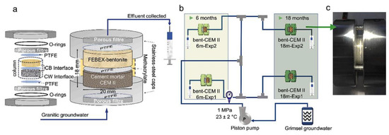 - Morozov, I.; Zakusin, S.; Kozlov, P.; Zakusina, O.; Roshchin, M.; Chernov, M.; Boldyrev, K.; Zaitseva, T.; Tyupina, E.; Krupskaya, V. Bentonite–Concrete Interactions in Engineered Barrier Systems during the Isolation of Radioactive Waste Based on the Results of Short-Term Laboratory Experiments. Appl. Sci. 2022, 12, 3074. [Google Scholar] [CrossRef]