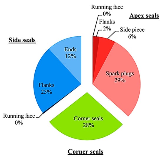 The major leakages among all these types are the leakages at the spark plug cavity and the corner seal gap. In his research, Picard reported that the leakages at the spark plug cavities and the corner seal are nearly 29% and 28% (refer to Figure 7) of the total leakage [].