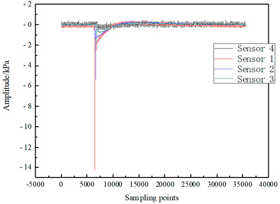 At 1 MPa with 0.45 mm, the four signals measured by sensors can be seen in Figure 10.