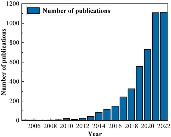 Comprehensive review articles [25] are available in the literature, indicating the importance of this research. Nevertheless, no review from the perspective of bibliometrics has been reported. Bibliometrics can identify the annual development trend of the analyzed field and the most influential contributors and journals, and it can analyze research hotspots and development trends in this field. This information can help readers to better understand the current situation and determine the future research direction from the results of bibliometric analysis and is therefore urgently needed.