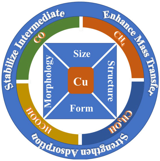 Copper-based catalysts are widely used in the field of eCO2RR due to their good catalytic effect and low cost. In addition, a copper-based catalyst is the only catalyst that can reduce CO2 to CO, CH4, HCOOH, C2H4, and other hydrocarbons and multi carbon products. When different copper based catalysts are used for eCO2RR reaction, the distribution of reduction products is different.