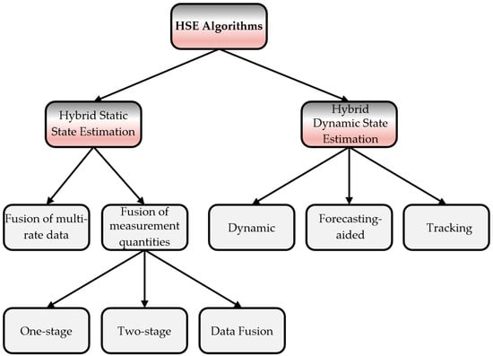 - Measurement model: Improvements in the HSE measurement model could also concern future publications. The measurement noise statistics are usually unknown or time-varying, an issue that is accentuated in the presence of multiple data sources. The assumptions pertaining to the statistical properties of measurements (noise Gaussianity and uncorrelatedness) should be alleviated in future work, expanding upon the research in [97,98,99]. Furthermore, network modeling also emerges as an issue, with wide integration of FACTS, HVDC, and DERs that need to be included accordingly in the measurement model and considered in the parameter estimation step. Mathematical formulations for different combinations of system components and measurement data need to be derived, to broaden the current SE modeling framework.