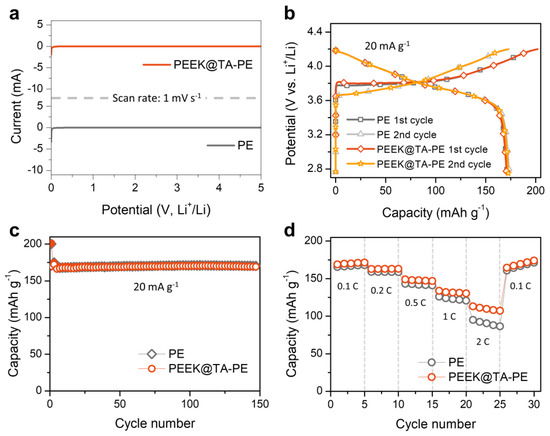 - Pan, L.; Wang, H.; Wu, C.; Liao, C.; Li, L. Tannic-Acid-Coated Polypropylene Membrane as a Separator for Lithium-Ion Batteries. ACS Appl. Mater. Interfaces 2015, 7, 16003–16010. [Google Scholar] [CrossRef]