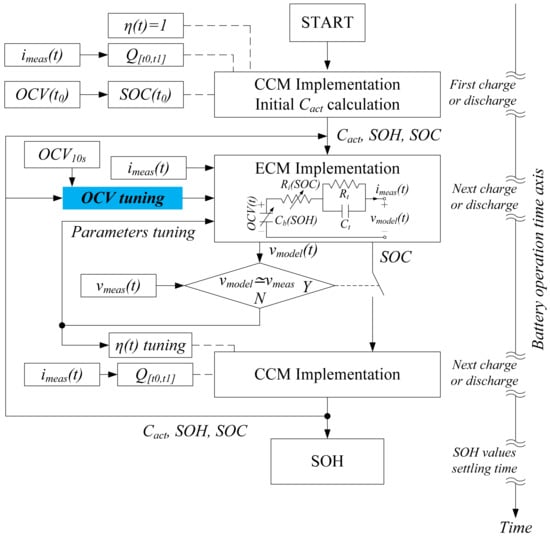 The evaluation of SOC and SOH requires the implementation of an estimation algorithm having an ECM as the core of the estimation process.