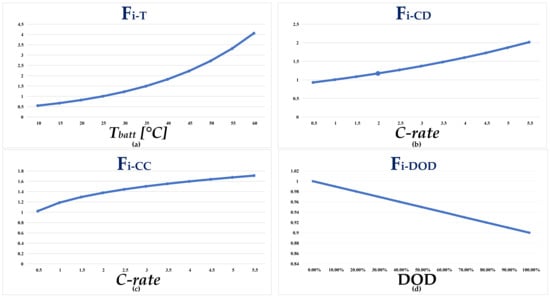 Li-ion batteries are complex electrochemical, time-varying and nonlinear systems, whose internal mechanisms are not yet fully understood. Battery degradation is a process involving many electrochemical reactions at anode, separator, cathode and electrolyte/electrode interfaces. The battery aging process depends on internal factors concerning the loss of active material (LAM), the loss of conductivity (CL) and the loss of lithium inventory (LLI). In particular, LAM includes the decomposition of anode and the cathode material and electrolyte, respectively. CL refers to the battery’s current collector breaking and decomposition, as well as to the battery adhesive detachment and degradation. Finally, LLI includes the constitution of lithium dendrites, the generation of a solid electrolyte interphase (SEI) layer and the self-discharge of the battery []. At the same time, operating conditions like temperature, the number of cycles and power magnitude also influence the battery aging process.