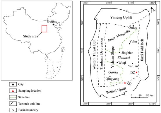 - Zhao, M.; Behr, H.J.; Ahrendt, H.; Wemmer, K.; Ren, Z.; Zhao, Z. Thermal and tectonic history of the Ordos Basin, China: Evidence from apatite fission track analysis, vitrinite reflectance, and K-Ar dating. AAPG Bull. 1996, 80, 1110–1133. [Google Scholar]