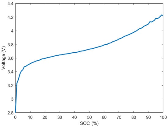 The state of charge (SOC) of the battery pack is calculated using the relationship shown in Equation (2).