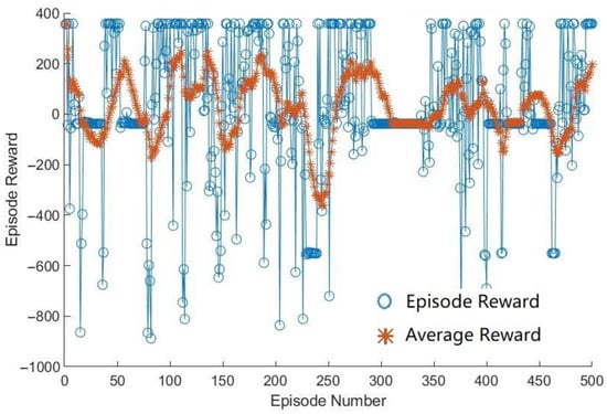 In Figure 8 and Figure 9, it can be seen that the HDDPG agent quickly converges at the beginning to a greater reward value than the DDPG agent. After around 200 episodes, DDPG agent converges to a negative reward value and does not improve any more. When the learning rate of the critic network in the DDPG agent was changed to 0.001, it showed an improved performance in the episode reward as shown in Figure 10. From this, it can be learned that the training performance is highly dependent on the learning rate, and thus it is important to find and use a proper learning rate for each network.