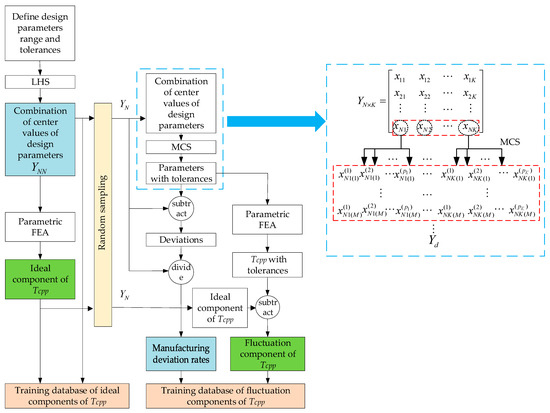 In order to establish approximate modeling of the ideal component and the fluctuation component of Tcpp, the corresponding input data of the model are the center values and the manufacturing deviation rates of the design parameters. The procedure for establishing the corresponding training database is shown in Figure 4.