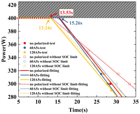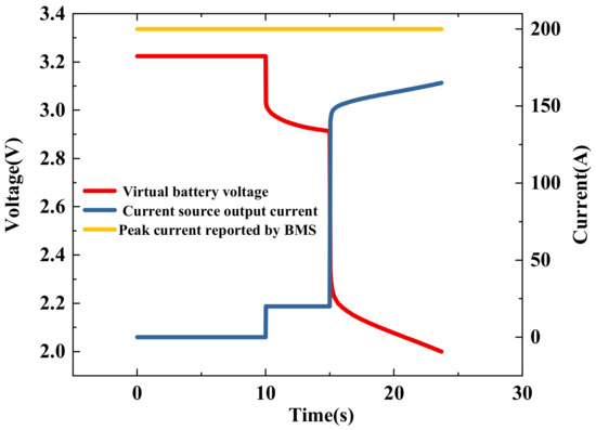 Finally, we can calculate the Ppeak of the battery pack using Equation (15). According to this method, the peak power of the battery pack in the charging direction can be obtained. We have demonstrated the SOP estimation accuracy of the battery cell based on the equivalent circuit model considering the polarization in [28], and the result meets the test requirements for the BMS.