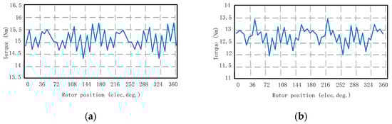 Torque waveforms of 39-slot and 6-pole motors. (a) 2-layer unbalanced winding motor. (b) Single layer unconventional winding motor.