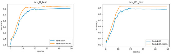 From Figure 12 and Table 5, it can be seen that the Tanh4-BP-MAML model outperforms the Tanh4-BP model for both D_test and D1_test datasets. Meanwhile, the model accuracy of both models on the D_test dataset is higher than that of the D1_test, but the differences are insignificant.