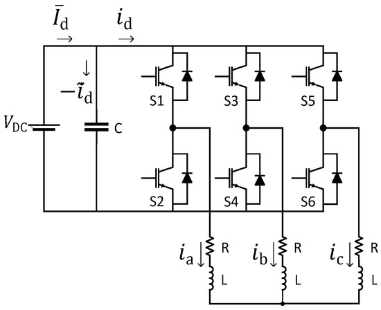 Figure 1 shows a typical three-phase VSI circuit supplying three-phase sinusoidal AC current (-) to a Y-connected RL load. The back-EMF (electromotive force) may also be present when modeling an AC-machine. However, it does not directly influence the calculation of the input current ripple. Thus, it is omitted from Figure 1 for simplicity. The reference signals (-) and the phase currents (-) in the three-phase VSI are expressed as