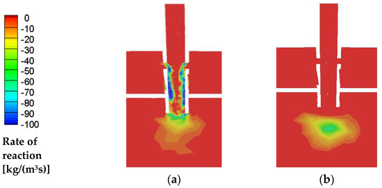 Hydrogen reaction rates when injected from premix (a) and from pilot (b) lines [36].