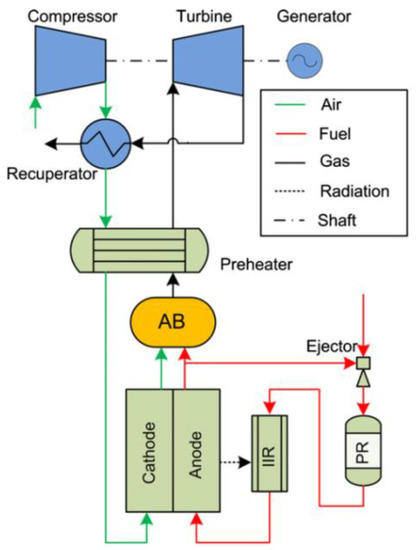 - Leto, L.; Dispenza, C.; Moreno, A.; Calabrò, A. Simulation model of a molten carbonate fuel cellemicroturbine hybrid system. Appl. Therm. Eng. 2011, 31, 1263–1271. [Google Scholar] [CrossRef]