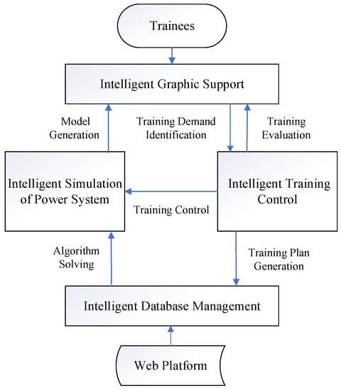 As shown in Figure 3, there are four subsystems in the IDTS, which are the intelligent power system simulation, intelligent training control, intelligent database management, and intelligent graphic support [17]. The intelligent power system simulation subsystem is designed to improve the simulation accuracy and efficiency with the adoption of intelligent techniques so as to support large-scale power system simulation and inter-regional joint exercises; the intelligent training control subsystem borrows the idea of adaptive learning so as to improve the effectiveness of dispatcher training; the intelligent database management subsystem provides data management support for the extended functions of the IDTS; and the intelligent graphic support subsystem improves user interaction experience. The functions and techniques of each subsystem are detailed as follows.