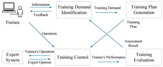 As shown in Figure 5, the intelligent training control subsystem includes four modules: training demand identification module, training plan generation module, training control module, and training evaluation module [17]. These four modules cycle to form a complete training process.