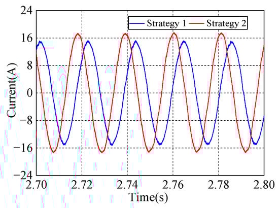 The phase current with (a) control strategy 1; (b) control strategy 2.