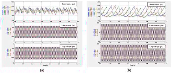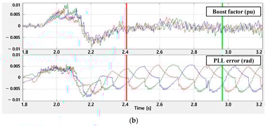 The boost factor K = 1.05 is changed to K = 1.47 during operation, as shown in Figure 8. The oscillation of 4 Hz due to the error in the internal PLL(Phase Locked Loop) controller occurs as in the steady state operation. This can be resolved through PLL controller gain correction in the future.