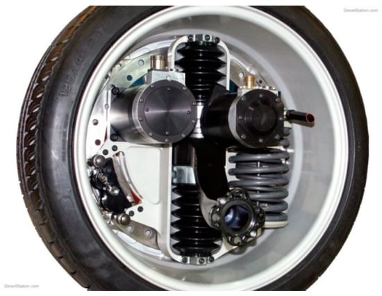 Use of a motor-wheel (Figure 2) allows for the exclusion of transmission and realizing direct engagement of the engine with a wheel [7]. The most expedient use of motor-wheels is in city electric transport such as a tram-bus, a trolley bus, or a subway in view of the fact that speed of communication of these vehicles is low and the majority of losses occur in a reducer.