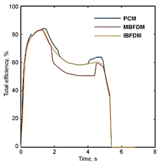 For braking hybrid vehicles, the rate of energy recovery will directly depend on many factors. The authors in [41] studied these factors. Simulation tests and theoretical calculations were carried out in the field of braking energy recuperation. As variable input parameters, various values of the initial deceleration rate and those of the initial pressure of the accumulators were used. The maximum recovery rate that the authors managed to obtain was 83.3% (Table 1). This recovery rate was achieved with the following initial parameters:
