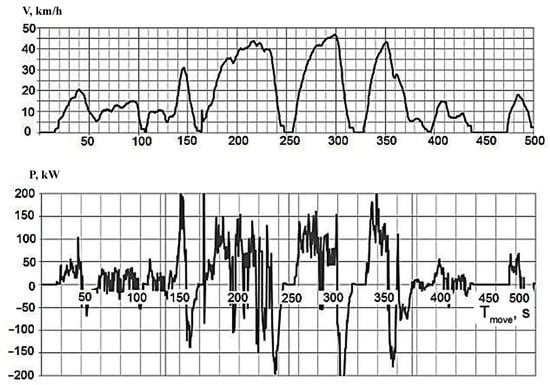 In addition, a method to improve the energy efficiency of rail transport systems by reducing idle time and using a hybrid energy storage unit is presented [13]. This will increase the average daily mileage and improve the reliability of auxiliary power supply while “smoothing” the electric load schedule of the train (Figure 4).