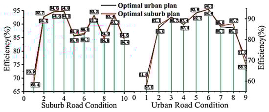 - RRBCS showed better adaptability to road conditions in terms of decision distribution. Under conditions of medium and low tire grip, the improvement obtained as a result of the optimization was the most significant (Figure 9). This study can provide further guidance on the optimal control strategy and lay the foundation for multi-purpose regenerative control of the basis for multi-purpose regenerative braking energy management of a real vehicle.