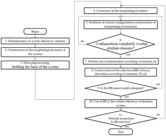 The aging of the vehicle park imposes certain limitations on the duration of the life cycle of the TrEECS model and requires periodic updating of the existing rule base by adjusting the vehicle age in the statistical sample and the values of the transition of the corresponding parameters to the next fuzzy term. The formalized stages of morphological analysis can be repeated to maintain an up-to-date base of derivatives. An up-to-date database will provide an assessment and forecast of the energy efficiency of vehicles in changing system conditions.