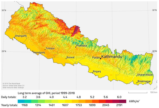 Therefore, to realize a medium-level estimate of the RPV in Nepal, this work sought to leverage ‘open-source’ data, and data readily available in the public domain. Such an approach for energy studies and modeling increases the transparency of the model. Non-transparent models and data, especially for urban energy systems, hinders public participation, limits scientific evaluation, and impedes discussions and public debate [23,24]. As such, there are significant benefits to be gained in the utilization of this approach.