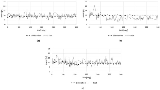 The root mean square error (RMSE) was used for the model validation. The area-averaged total pressure was investigated for three different turbine speeds for validation purposes. The total pressure was measured at the outlet from the second-stage rotor. The RMSE can be calculated as follows: