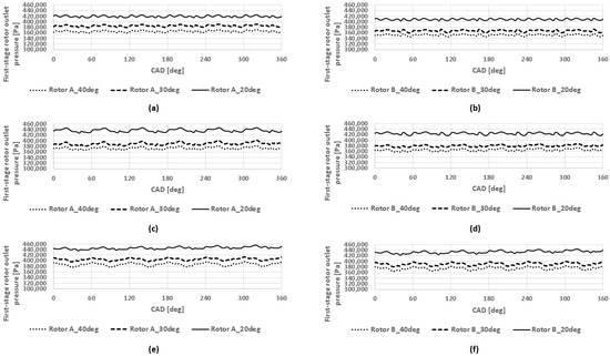 It can be seen that the increase in the elements led to a negligible difference between pressure variations. The total number of elements of the two-stage turbine model with rotors A and B is shown in Table 5.