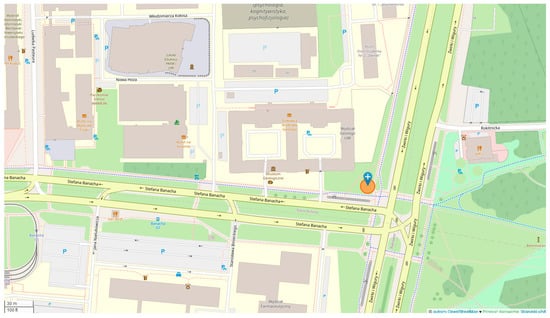 Location of the measuring station at Stefana Banacha street (own study, based on