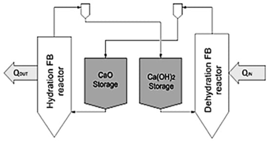 - Rougé, S.; Criado, Y.A.; Soriano, O.; Abanades, J.C. Continuous CaO/Ca(OH)2 Fluidized Bed Reactor for Energy Storage: First Experimental Results and Reactor Model Validation. Ind. Eng. Chem. Res. 2017, 56, 844–852. [Google Scholar] [CrossRef]