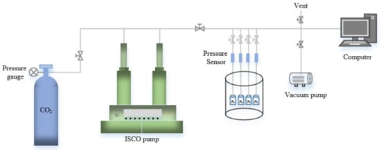 The success of the American shale oil extraction technology has considerably stimulated China’s interest in developing shale oil exploration because of increasing energy demand [,]. China is rich in shale oil reserve, as approximately 5.5 billion tons of shale oil is available for exploitation. However, shale oil is an unconventional energy source with worrying mining disadvantages []. Problems associated with shale oil reservoirs include their low organic matter content, low-pressure coefficient, high shale content, clay expansion, and environmental pollution, as well as other problems related to volume fracturing [,]. Therefore, the use of waterless fracturing technologies (such as CO2 fracturing) for extracting shale oil has been explored globally []. Shale oil production still faces problems, such as a sharp decline and low oil recovery. Wu et al. [,] noted that apparent permeability is a key parameter in evaluating an unconventional reservoir. Researchers have been working to solve these problems; a focus area is the change in shale permeability caused by carbon dioxide injection.