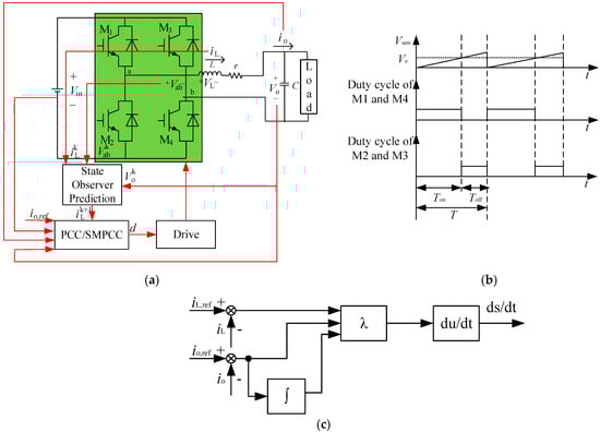 In order to verify the effectiveness of SMPCC, a model is built for simulation. The control diagram is shown in Figure 2. is the carrier signal of M1 and M4, is modulated signal of M1 and M4, is the time when M4 is turned on in a control cycle, is the time when M4 is turned off in a control cycle.