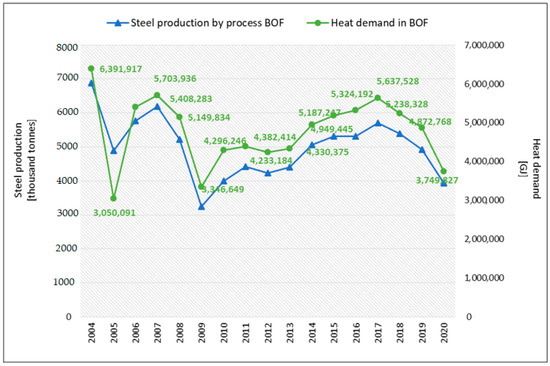 Total heat demand in the BOF process in Poland from 2004 to 2020. Source: Own elaboration.