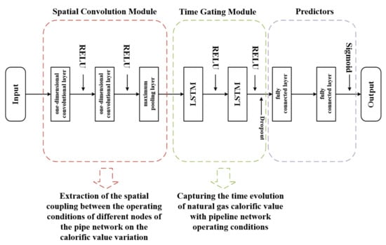 For complex natural gas pipeline network structures with diverse gas mixing scenarios, we integrate the effects of dynamic factors such as real−time changes in gas source conditions and gas demand, as well as non−stationary processes in the physical pipeline network. In this chapter, a deep−learning model based on the fusion of convolutional neural networks and long and short−term memory neural networks is developed to capture the spatial and temporal characteristics of the complex gas mixing and transportation processes in the pipeline network, and to learn the dynamical evolution of the system operation and the trend of gas quality changes. The basic theory and algorithms of convolutional neural networks and long and short−term memory neural networks, as well as the architecture of the stacked CNN−LSTM deep hybrid neural network prediction model, are presented in the following section. Finally, a gradient descent−based BP algorithm is used for the training of the model.