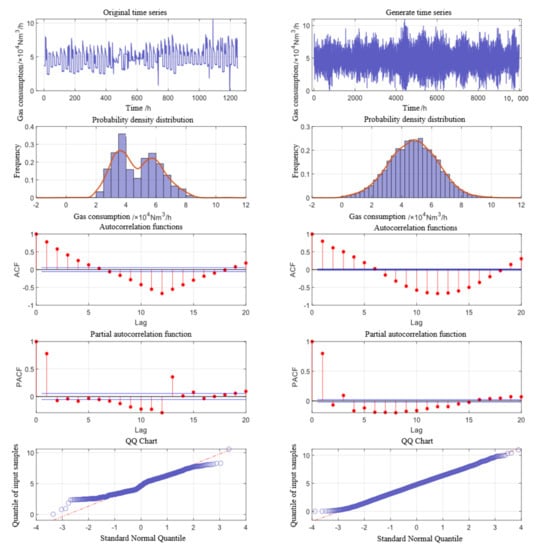 In addition, to ensure that the operational data generated by the physical model were more closely matched to the actual production and operational characteristics, continuous time series data such as changes in the gas quality of each gas source and fluctuations in customer demand is one of the necessary boundary conditions for the dynamic simulation of the pipeline network. However, the dynamic behavior of gas sources in the network, such as gas quality changes and gas demand fluctuations, was not completely random. Rather, it was subject to a combination of physical process constraints and market characteristics. It is therefore not reasonable to generate such boundary conditions in a stochastic manner.