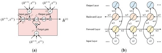 Figure 1. Structure of LSTM and its variants: (a) LSTM; (b) Bi-LSTM.