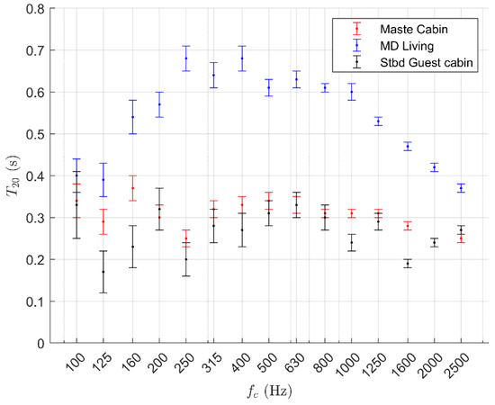 This classification, which in 2013 joined the Derk Norske Veritas, has five comfort classes that goes from acceptable to excellent. The values are distinguished between passenger’s and crew’s spaces. Like in the procedure used in the present paper, the Germanischer Lloyd company follows the ISO 717-1:2020 [24] and ISO 717-2:2020 [25] procedure for the evaluation of the weighted acoustic indexes. The final class name obtained with the weighted sound reduction index is called acoustic privacy and depends on the cabin’s scope. The overall quality class is the arithmetic sum of all the “Harmony Classes” (hc).