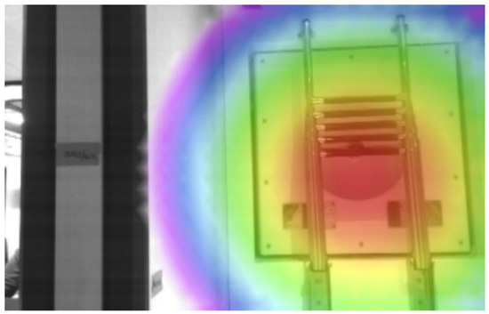 The difference between the translated reference curve and the measure third-octave band spectrum of , reported in Figure 5, is a possible sentinel of the presence of sound energy leakage, responsible for the worsening of the overall standardized sound difference index of up to almost 5 dB according to Kang et al. [27]. However, in [27], the measurements performed to verify such behavior were taken under controlled situation, thus only accounting for the direct propagation ways of air-borne noise. According to the previously presented work [26], sound energy leakage of different kinds can be found with the acoustic camera. Figure 7 reports the localized sound energy leakage in the Stbd Vip Cabin—Engine Room partition. This, as well as all the others, correspond to the escape ways and the acoustic camera measurements helped on revealing them, which are voluntarily hidden for recreational reasons. However, the combined acoustic camera and room acoustic analysis shows that their design has not been carried out to take into account the attenuation of the sound energy, and they are responsible for the scarce apparent sound reduction index. Moreover, poor sound energy insulation surely corresponds to poor thermal insulation, thus, also in this case, more attention must be paid by the designers.