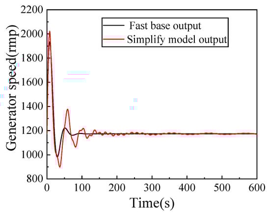 Comparison of generator speed between the base output of FAST and the output of the simplified model.