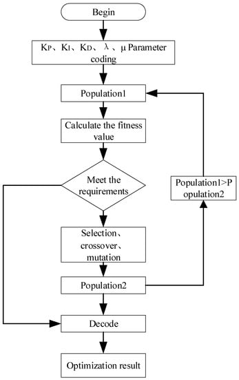 - When the parameters converge or reach the target value, the optimal parameters of the system are obtained. The flow chart of the genetic algorithm optimization of PID parameters is shown in Figure 4.